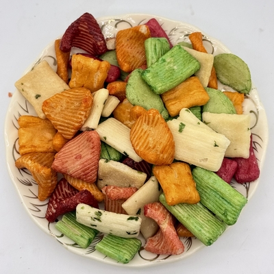 Bizim Renkli Karışık Pirinç Krakerleri tek bir lezzetli atıştırmalıkta çeşitli canlı şekil ve lezzetleri bir araya getirir. Birinci sınıf pirinçten yapılmış ve altın rengine kadar pişirilmiş bu krakerler yeşil, turuncu, kırmızı ve doğal renklerde gelir. Gevrek dokuları ve göz alıcı görünümleri, onları perakende atıştırmalık paketleri, parti karışımları ve sağlıklı atıştırmalık alternatifleri için popüler bir seçim haline getirir.